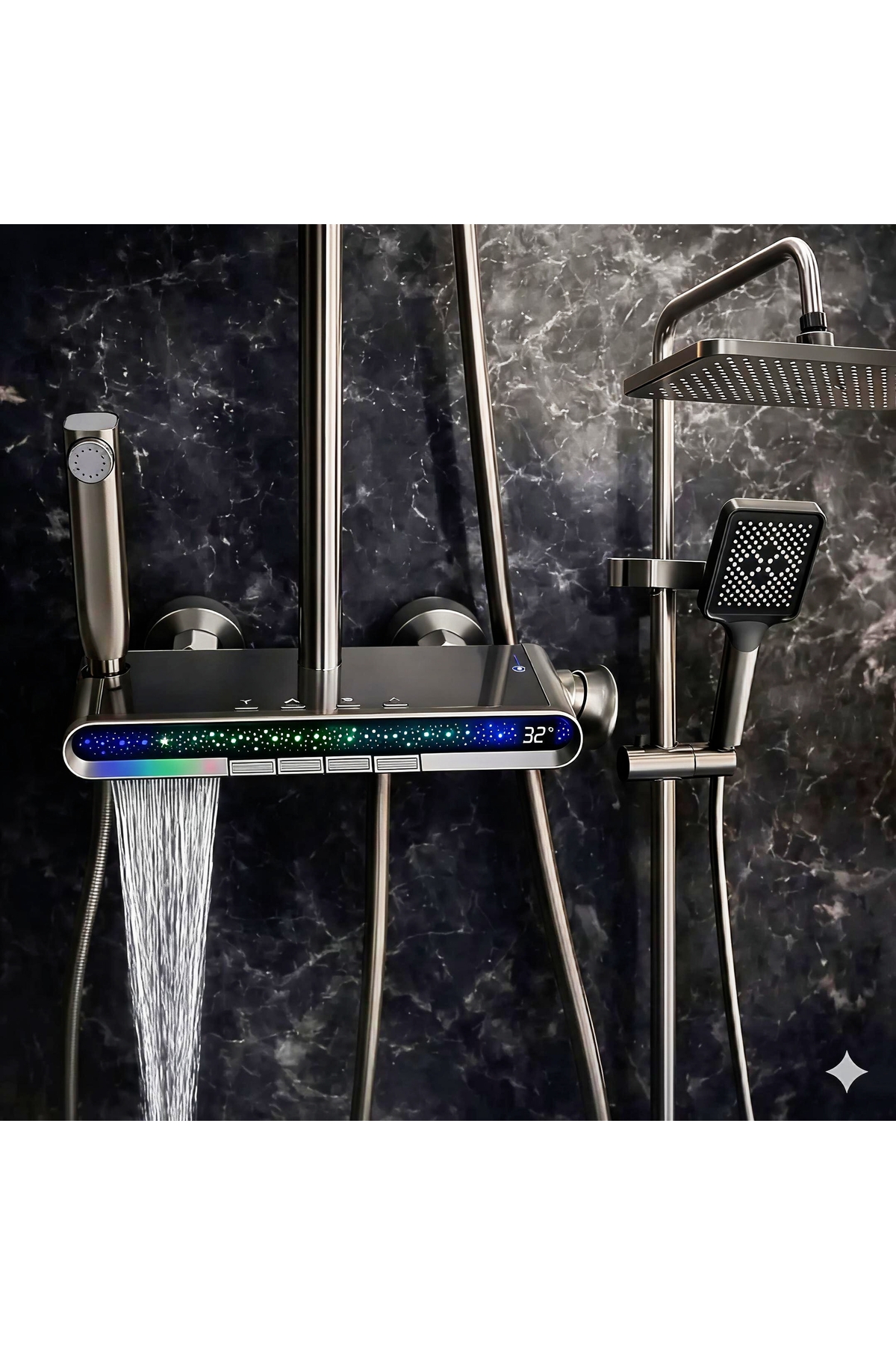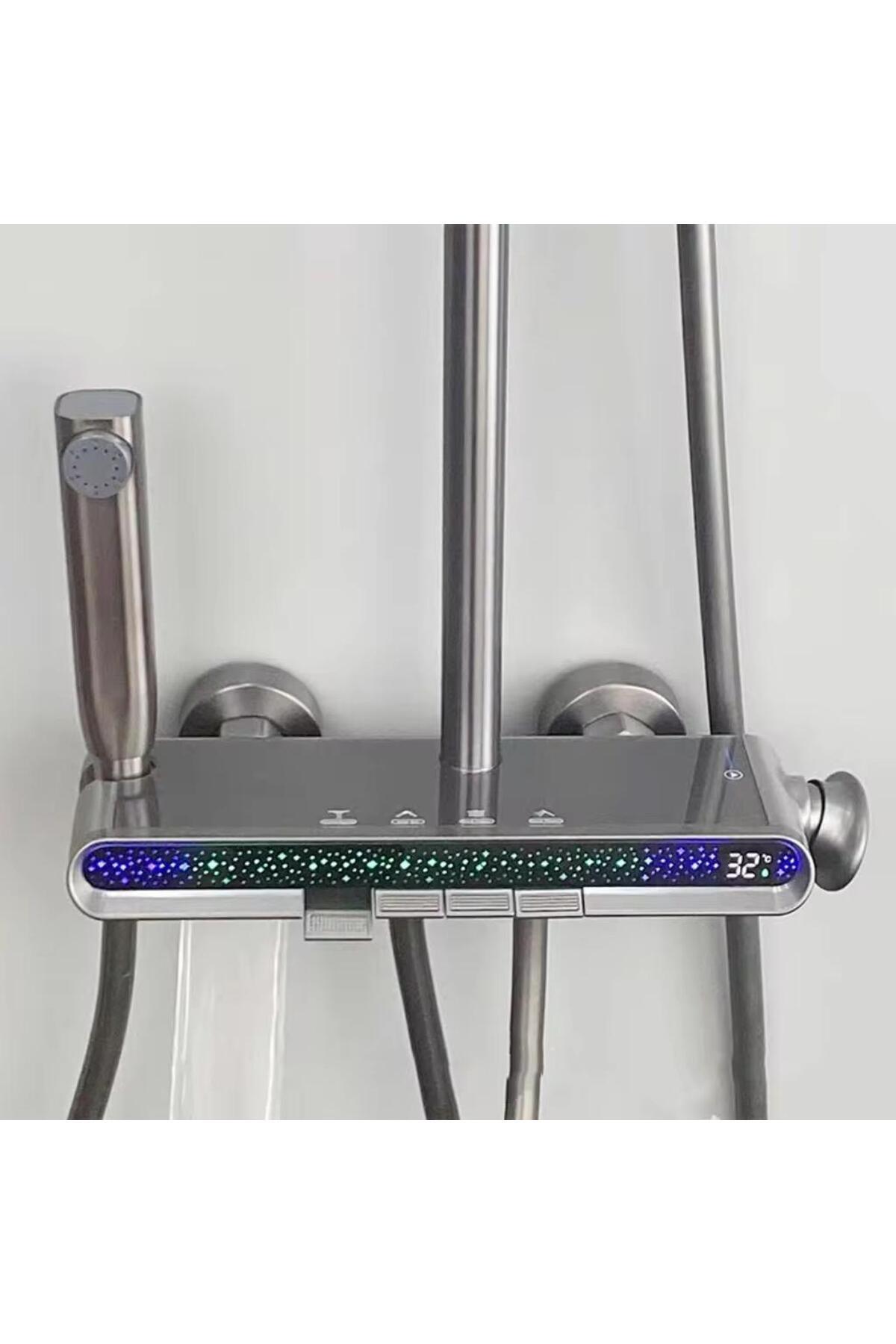 Modern banyolar için hem estetik hem de işlevsel çözümler sunar.; Elektrik gerektirmeden yalnızca suyun gücüyle çalışan LED aydınlatmaları sayesinde banyonuzda hem tasarruf hem de zarif bir atmosfer yaratır.; Yeşil enerji prensipleriyle tasarlanan bu ürün, çevre dostu bir yaşam tarzını desteklerken benzersiz bir duş deneyimi sunar.; Gelişmiş Özellikler: • LED Aydınlatma: Su gücüyle çalışan enerji tasarruflu LED ışıklar, banyonuzda modern ve huzurlu bir ortam yaratır.; • Tuş Takımı: Kolay kontrol sağlayan tuş takımı ile istediğiniz fonksiyonu hızla seçin.; • Püskürtme Tabancası: Evcil hayvanlarınızı yıkamak veya banyonuzu temizlemek için idealdir.; • El Su Çıkışı: Kişisel kullanımınıza uygun ergonomik tasarım.; • Üst Sprey Su Çıkışı: Geniş su dağılımı ile ferahlatıcı bir duş deneyimi sunar.; • Küvet Bataryası Su Çıkışı: Çok yönlü kullanım için pratik bir çözüm.; • Yüksekliği Ayarlanabilir Duş Borusu: Kullanıcı konforu için farklı yüksekliklere kolayca ayarlanabilir.; • Pirinç İç Gövde Yapısı: Dayanıklı ve uzun ömürlü kullanım sağlar.; Neden akıllı duş sistemi? • Su ve enerji tasarrufu sağlayan yenilikçi LED aydınlatma.; • Çevre dostu, modern tasarım.; • Geniş duş alanı ve çok yönlü kullanım özellikleri.; • Yüksek kaliteli malzeme ve dayanıklılık.; Duş Paneli ile banyonuzu yalnızca bir temizlik alanından çok daha fazlasına dönüştürün.; Su gücünün teknolojik yeniliklerle buluştuğu bu ürün, modern banyolar için mükemmel bir seçimdir.;