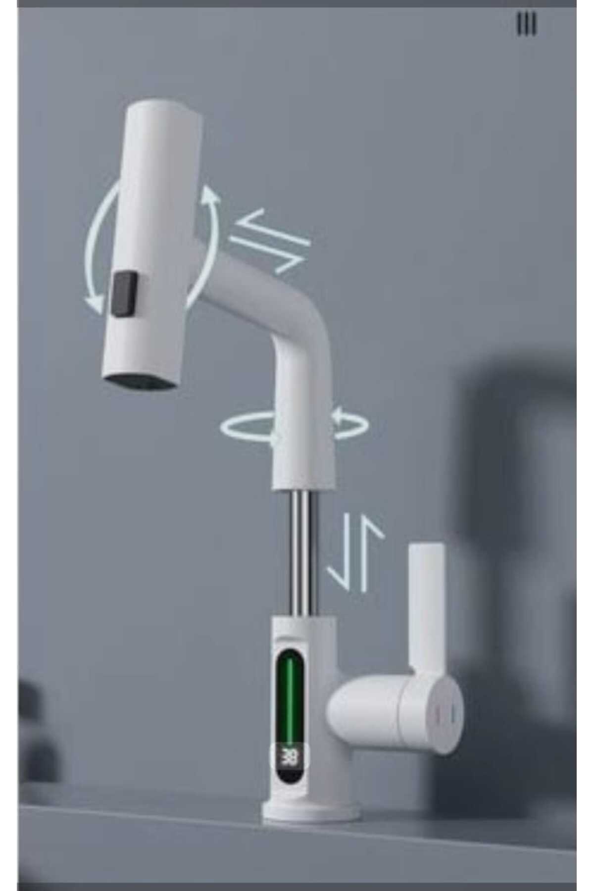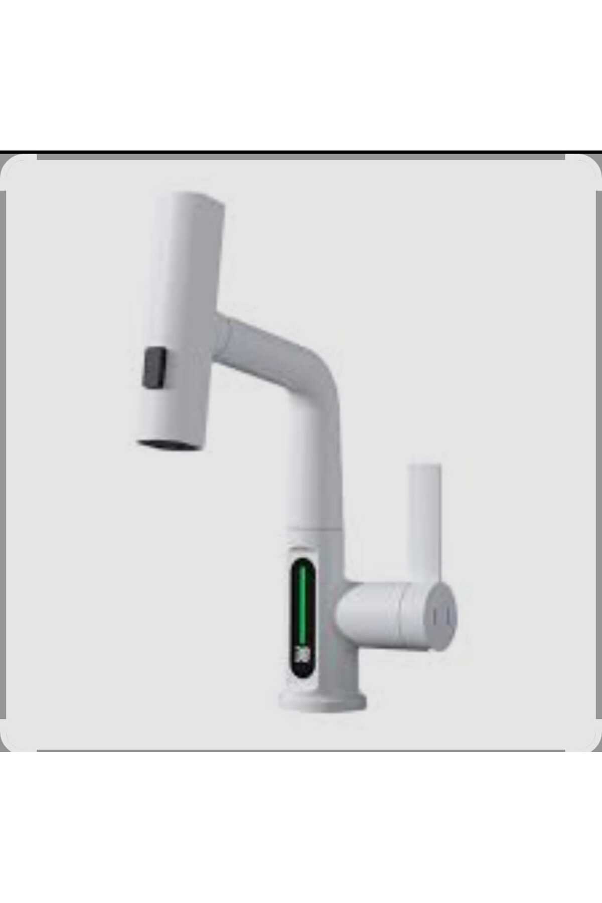 Dijital Sıcaklık Göstergeli Lavabo Musluğu Bu pirinç malzemeden üretilmiş lavabo musluğu, dayanıklılık ve modern tasarımı bir araya getiriyor.; Fırçalanmış paslanmaz çelik kaplaması, banyonuza zarif bir görünüm kazandırırken, sıcak-soğuk su karıştırma ve tek kollu kullanım kolaylığı sunar.; Elektrikli musluk özelliği ve çekilebilir sprey başlığı ile hem konforlu hem de fonksiyonel bir kullanım sağlar.; Farklı dekorasyon tarzlarına uyum sağlar.; Bu ürün, hem estetik hem de işlevsellik arayanlar için ideal bir seçimdir.; • Malzeme: Pirinç • Kaplama: Paslanmaz çelik fırçalanmış yüzey • Fonksiyonlar: Tek kollu kullanım, sıcak-soğuk su karıştırma, sıcaklık ayarlama • Renk Seçenekleri: Siyah, beyaz, krom, tabanca grisi • Özellikler: Elektrikli musluk, çekilebilir sprey • Ağırlık: 1030 g • Kullanım Alanı: Lavabo ve banyolar